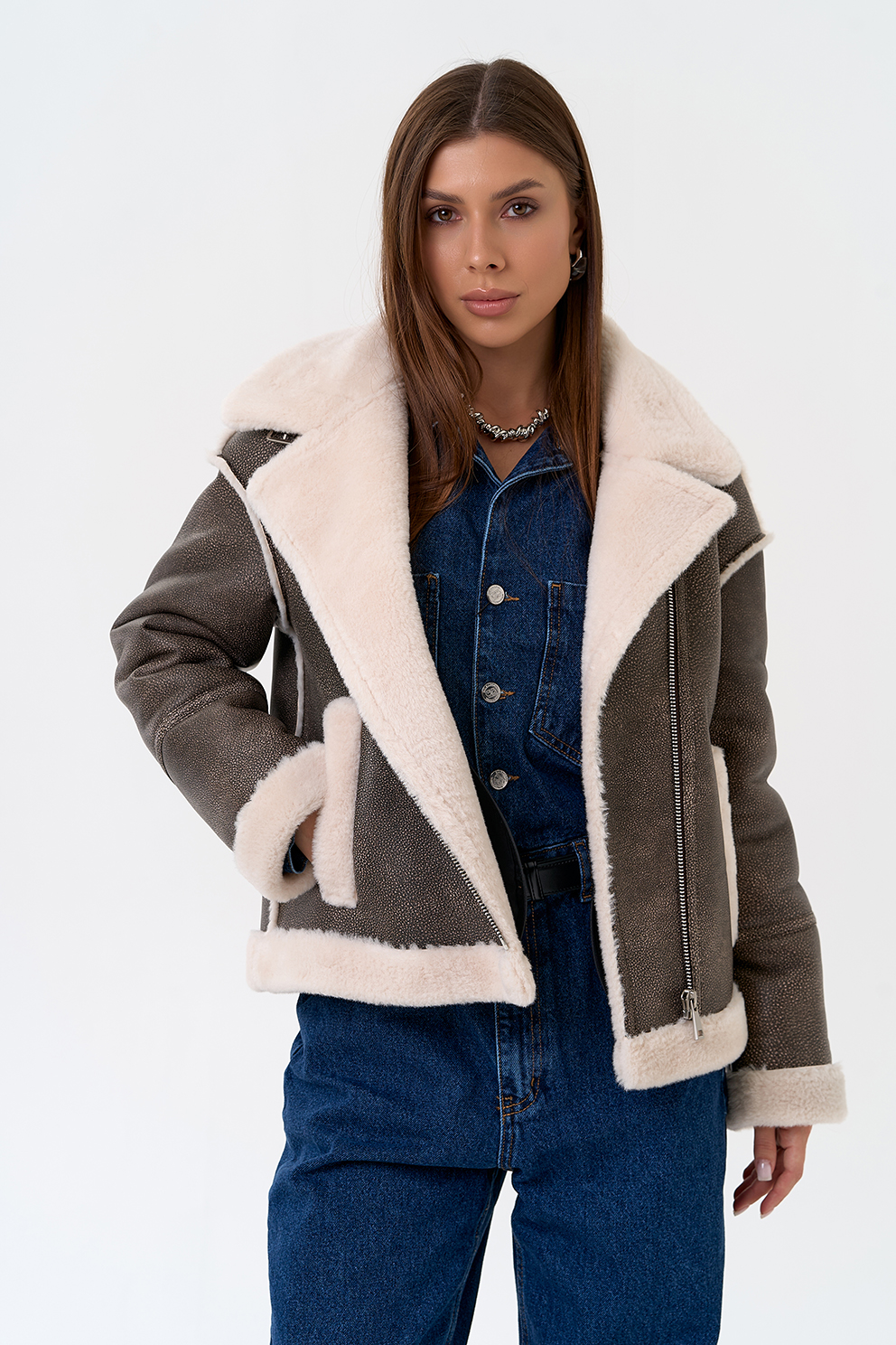 Вид ворота - отложной, отделка эко мех белый
