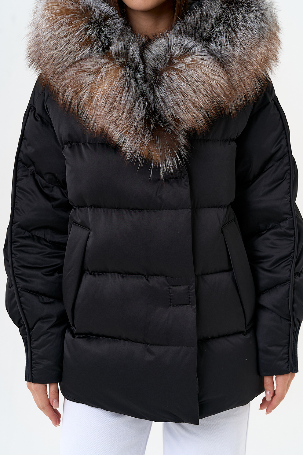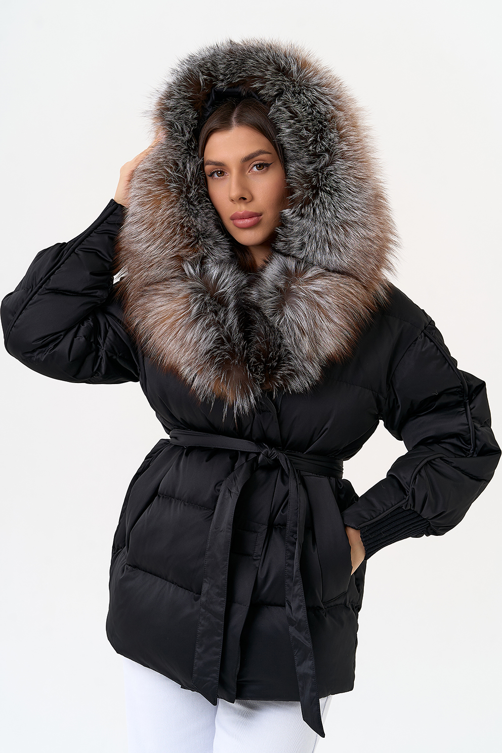 Крой воротника - капюшон, отделка блюфрост