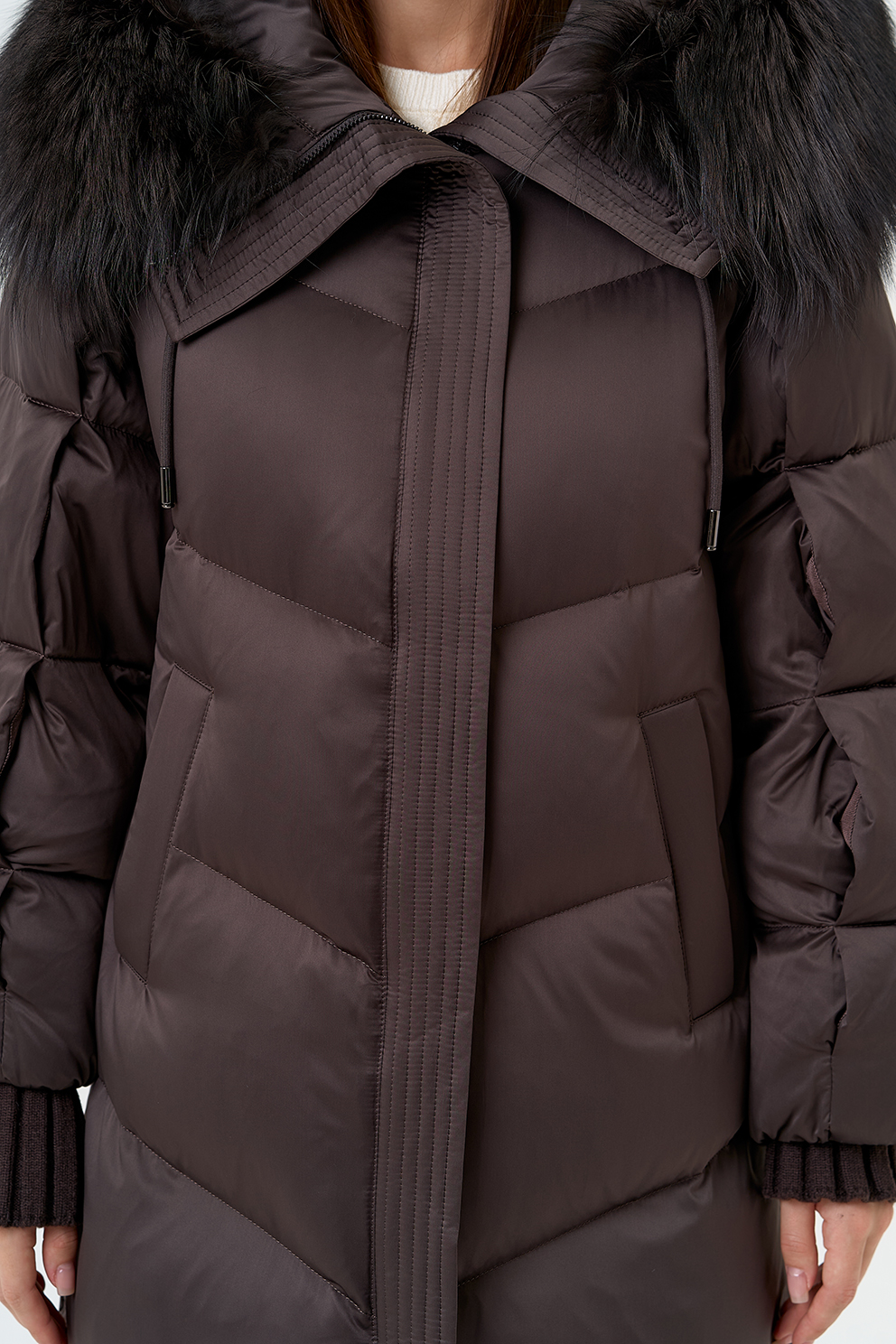 Крой воротника - капюшон, отделка чернобурка