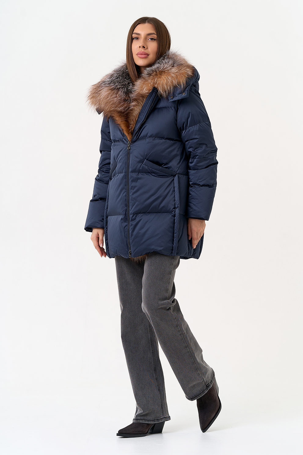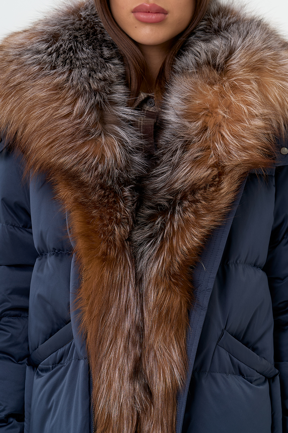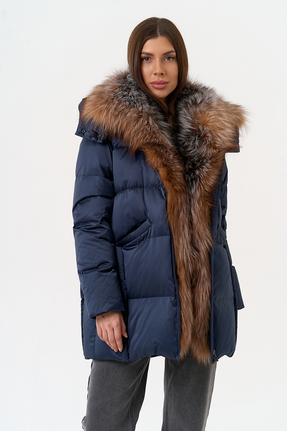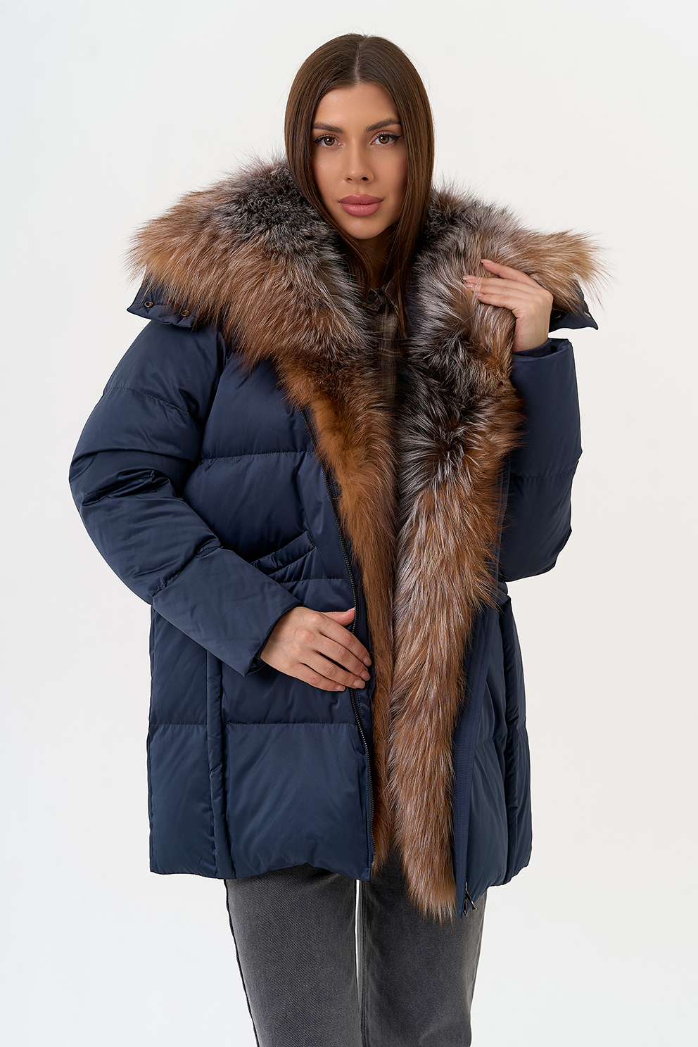Крой воротника - капюшон, отделка блюфрост