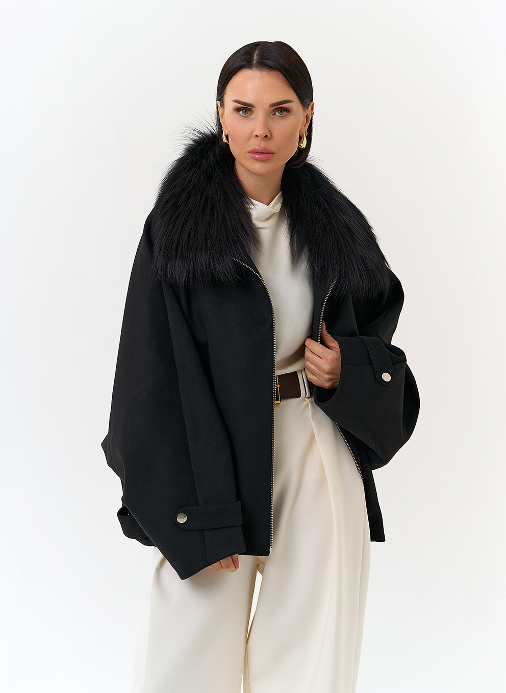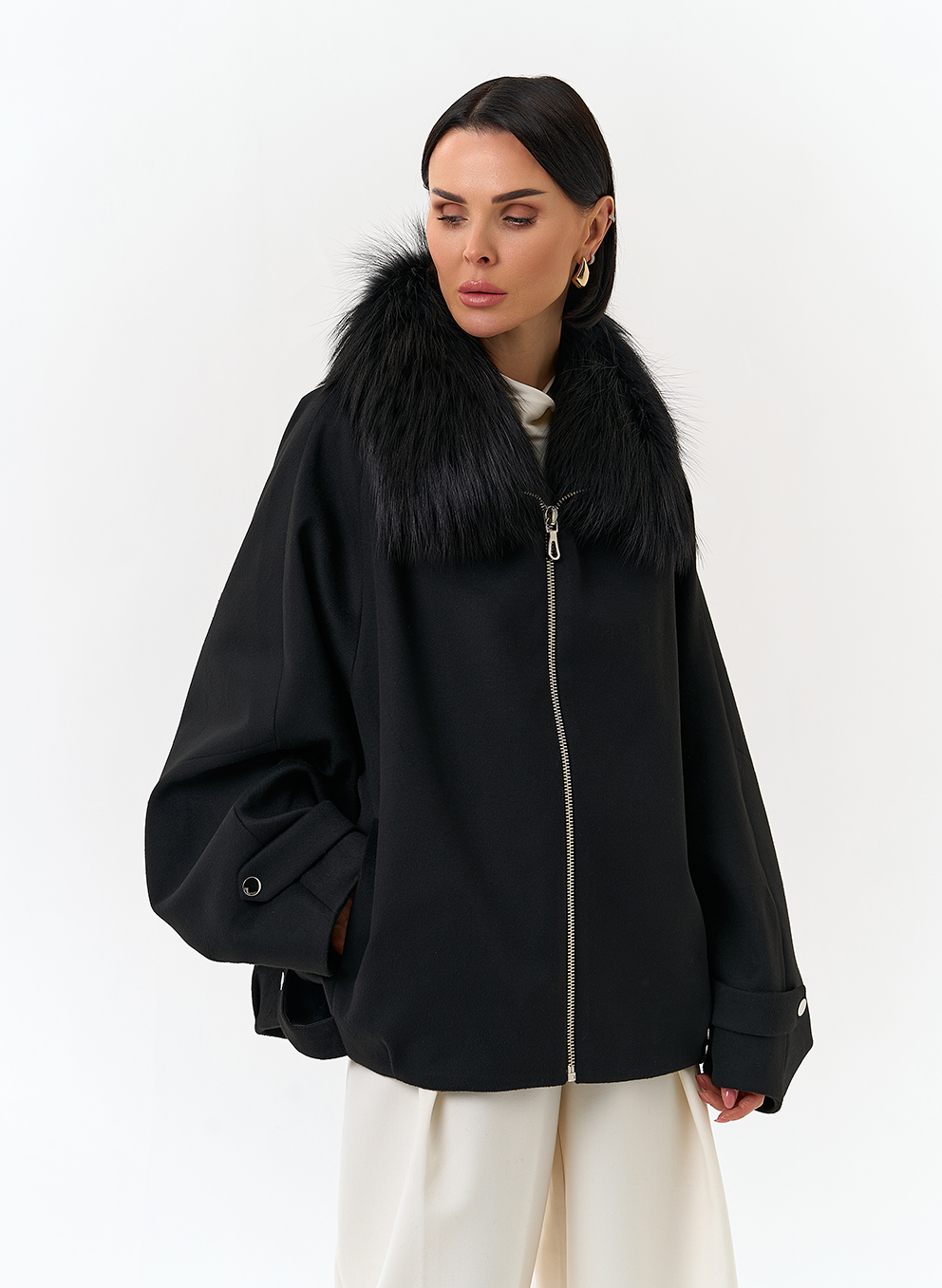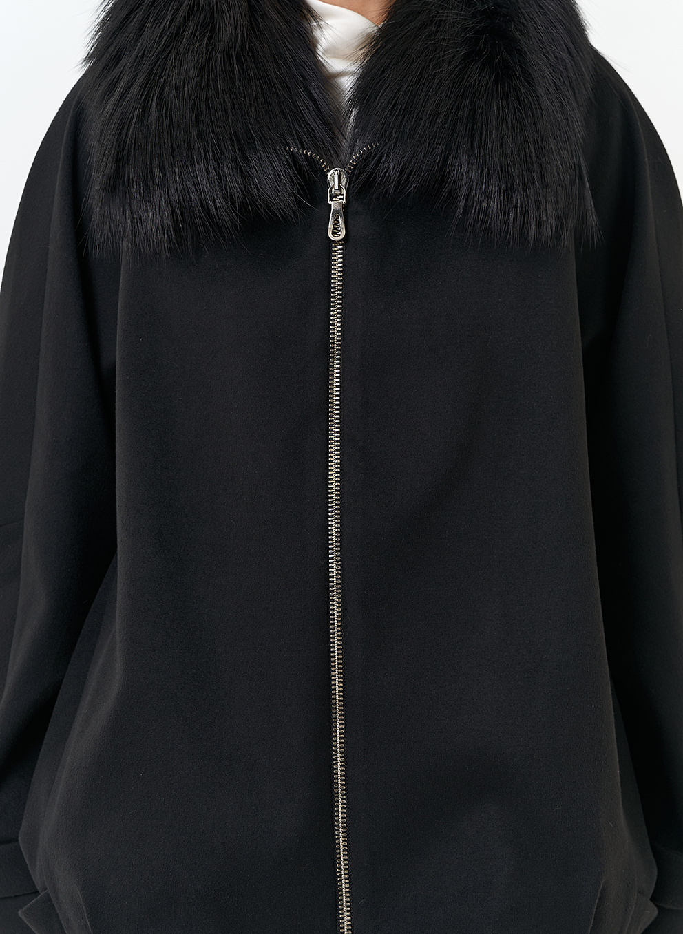 Отделка воротника - мех лисы, цвет черный